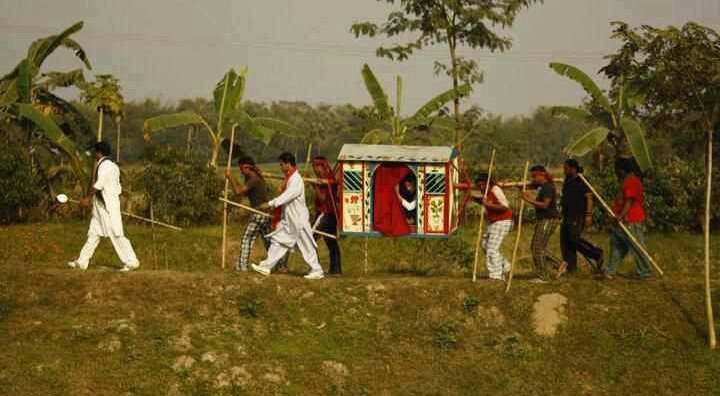 There are some transportation means that are parts of culture of Bangladesh. In rural areas bullock carts, buffalo carts and tomtoms (horse carts) are commonly used. In old Dhaka once tomtom was a common vehicle and still it is found, though rare. Bicycles are used both in rural and urban areas. Palki (a box-like vehicle carried on shoulders by six men) is a wedding transportation means. Brides are carried to the bridegrooms’ places by Palki. Being a land crisscrossed by rivers, Bangladesh has a wide-ranged tradition of ferry transport. Wooden boat popularly called nawka is a vital means of rural communication. Rickshaw is a very common vehicle to Bangladeshis.